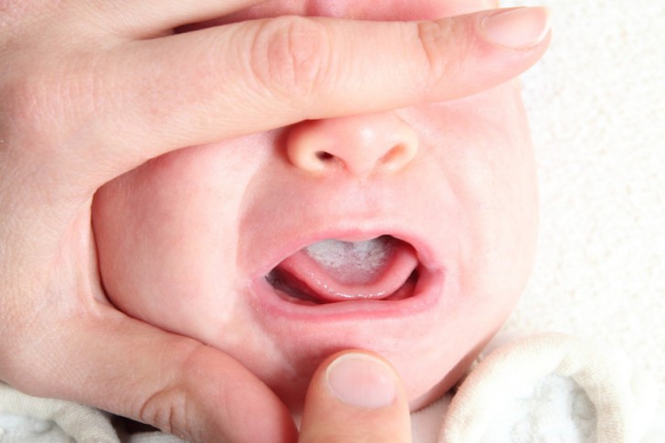 Одной из возможных причин появления во рту малыша белых пятен, прыщей или налета, как говорилось раньше, является стоматит. Например, в случае дрожжевого (грибкового) стоматита налет или точки на языке и деснах напоминают творог. Протекание болезни сопровождается повышенной капризностью ребенка и отказом от еды.