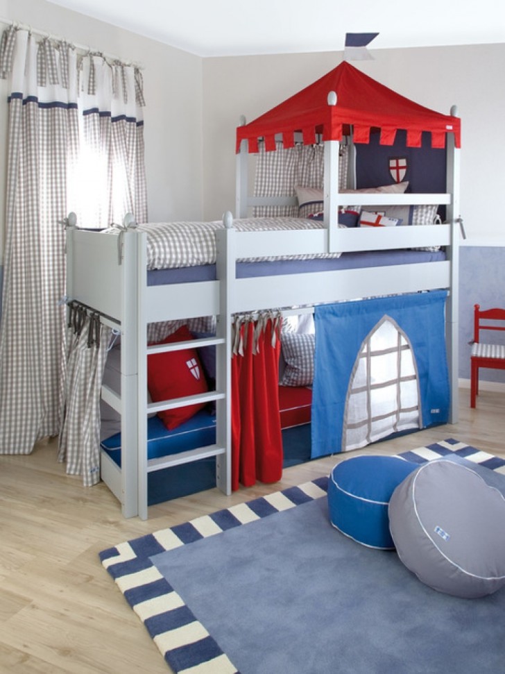 Если комната делится между однополыми детьми, хорошо подойдет визуальная смена оформления. Если же планируется разделить детскую комнату на двоих разнополых детей, лучше поделить физически хотя бы часть пространства, например, скрыть спальное место ширмой, шкафом или пологом.