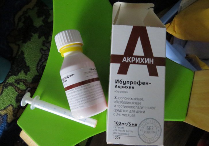 Суспензию иначе называют «жидким Ибупрофеном для детей». Одна из разновидностей суспензии – Ибупрофен-Акрихин – может применяться только для лечения детей до двенадцатилетнего возраста. Лекарство может применяться при болевом синдроме, жаре и лихорадочных состояниях у детей с 3 месяцев. Давать детский сироп грудничку допустимо только по назначению педиатра.