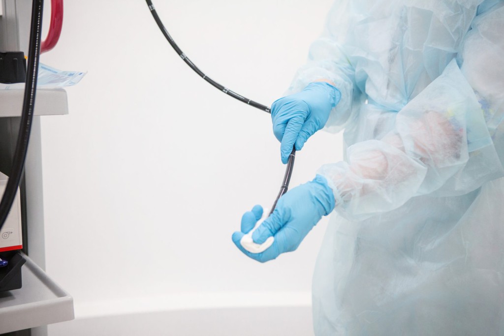 Если женщина не спит, она самостоятельно ложится на левый бок, закусывая специальный загубник. Врач опрыскивает лидокаином глотку и через 5 минут вводит трубку. Вся процедура занимает 10-15 минут (с биопсией – полчаса).